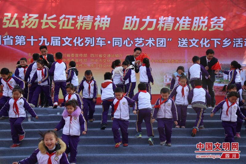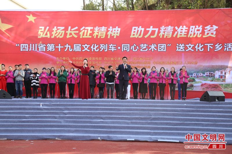 四川文明网巴中讯(罗园)12月26日上午,随着同心艺术团主题曲《同心同愿》在巴中市南江县长赤镇小学的操场响起,四川省第十九届文化列车·同心艺术团慰问演出完美收官。从12月20日在巴中市通江县的首场演出开始,文化列车先后开进了巴中市通江县、平昌县、巴州区、经开区、恩阳区、南江县六个区县的多个乡镇、村社,开展了12场文艺演出,为革命老区的百姓们带去了精彩纷呈的节目,送去了新年的祝福。