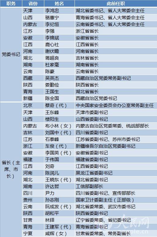 14省区市调整省级党委书记 20省区市省级政府“换帅”