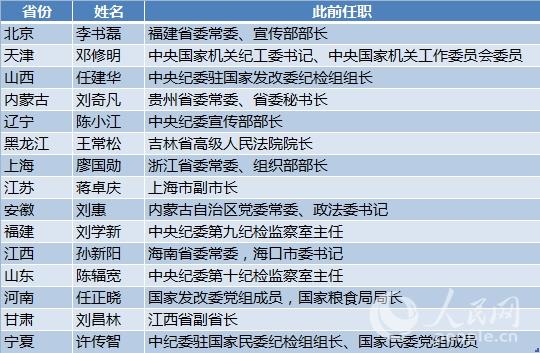 15省区市调整省级纪委书记 半数由中央纪检系统空降