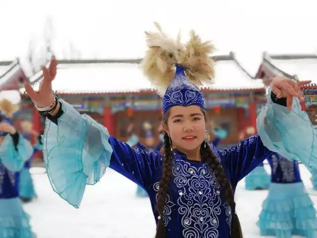 2016-12-24,新疆巴里坤。一名哈萨克族少女在雪花中翩翩起舞。作者:高老头