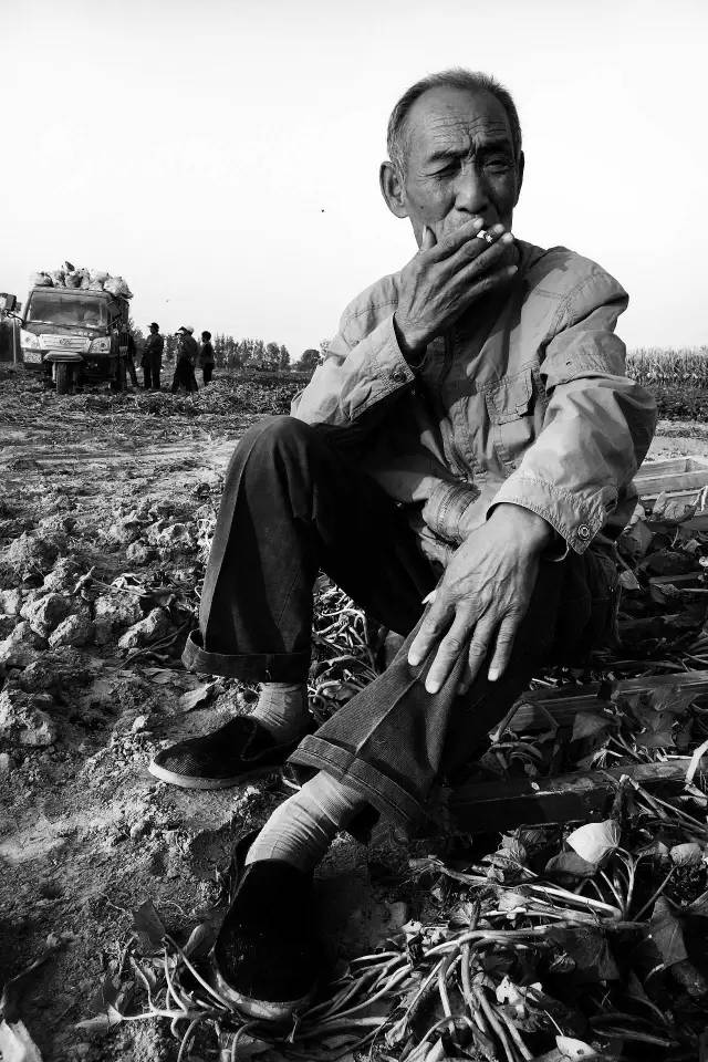 2016-10-13,山东夏津。一位农民在收获红薯之后,坐在田地里休息。作者:郭绪雷