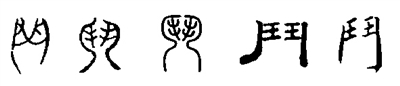 我们再看“鬥”字,《说文解字》释为:“两士相对,兵杖在后,象鬥之形。”下面是“鬥”的字形演变: