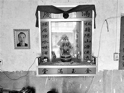 中秋节毛祖龙家中墙上挂着祭奠他的照片 摄影/本报记者 张倩