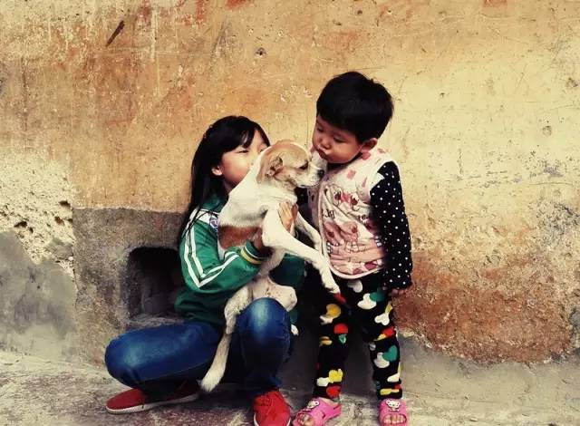 2016-10-30,广西来宾市。老房子屋檐下,姐姐拥狗入怀,妹妹深情一吻。作者:简单生活