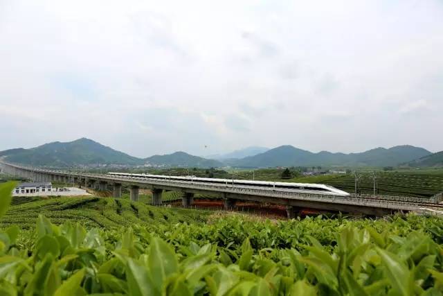 《动车驰过万亩茶园》