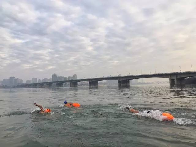 2016-10-15,湖北省襄阳市。早晨汉江的游泳人。作者:肖劲松