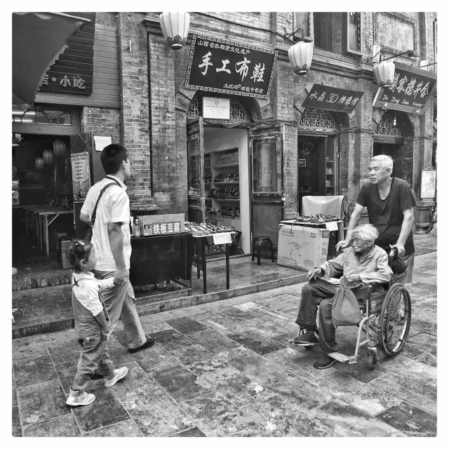 2016-09-24,平遥古城。街头一老一少,岁月轮回,时光已逝。作者:画影阁
