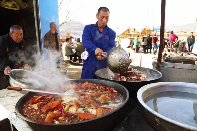 2016-04-03,陕西延安。农村人家婚嫁,喊上亲朋好友来家中院子里请吃“八大碗”。作者:宋晨