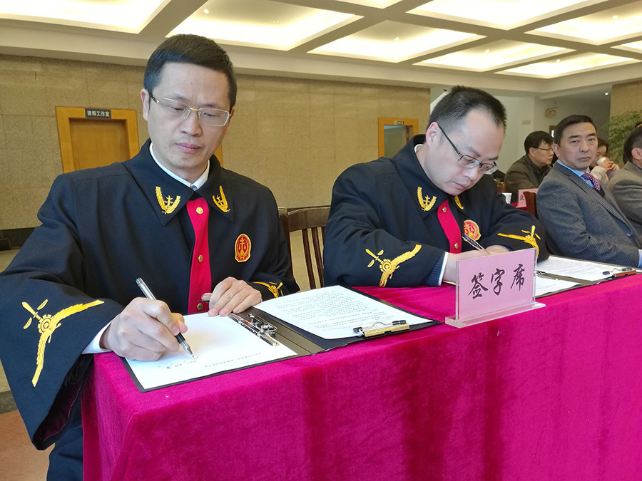 面对鲜艳的五星红旗和庄严的国徽,55名首批入额法官右手举拳,作出了神圣而庄严的承诺:“我是中华人民共和国法官,我宣誓:忠于中华人民共和国宪法,维护宪法权威,履行法定职责,忠于祖国、忠于人民,恪尽职守、廉洁奉公,接受人民监督,为建设富强、民主、文明、和谐的社会主义国家努力奋斗!”宣誓后,入额法官代表还现场签订了入额承诺书。