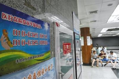 7月28日,东方医院,挂号大厅墙壁上贴有医保投诉举报电话。资料图片/新京报记者 王嘉宁 摄