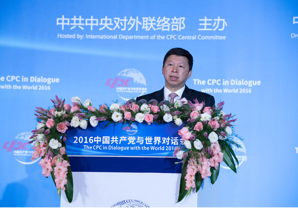 2016年10月15日,宋涛在中国共产党与世界对话会闭幕式上讲话。