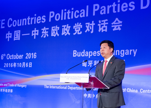 2016年10月6日,宋涛在中国-中东欧政党对话会上讲话。