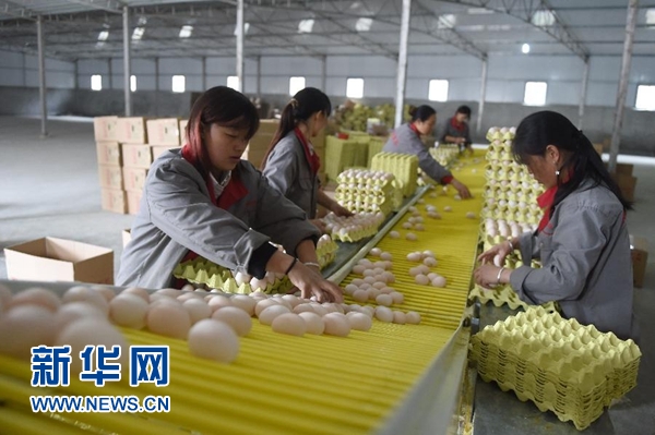 在贵州省毕节市七星关区五里坪村,当地农户在一个属于精准扶贫项目的养鸡场内分拣鸡蛋(2015年11月15日摄)。两年多来,中央全面深化改革领导小组确定的181个重点改革任务基本完成,中央有关部门完成261个改革任务,各方面共出台改革成果785项。随着一项项改革措施密集出台,全面深化改革潮掀浪涌,奏出推动经济社会发展的时代强音。 新华社记者 潘昱龙 摄