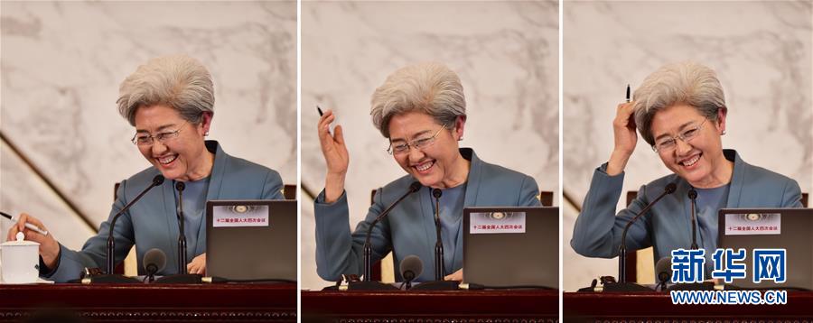 3月4日,十二届全国人大四次会议在北京人民大会堂举行新闻发布会。大会发言人傅莹就大会议程和人大工作相关的问题回答中外记者的提问。新华社记者 金良快 摄