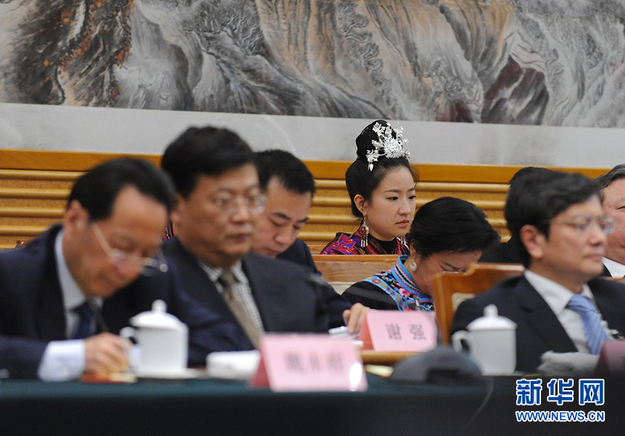 贵州代表团团组于3月7日15时在国谊宾馆迎宾楼第一会议室举行全体会议,会议议题为审议政府工作报告。图为参加会议的代表们。新华网/中国政府网 陈竞超 摄