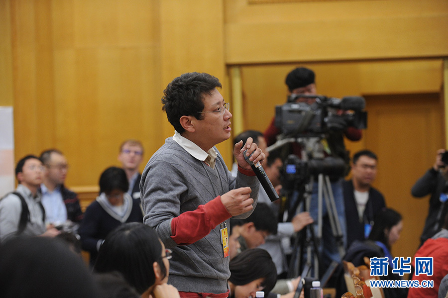 贵州代表团团组于3月7日15时在国谊宾馆迎宾楼第一会议室举行全体会议,会议议题为审议政府工作报告。图为新华社记者提问。新华网/中国政府网 陈竞超 摄
