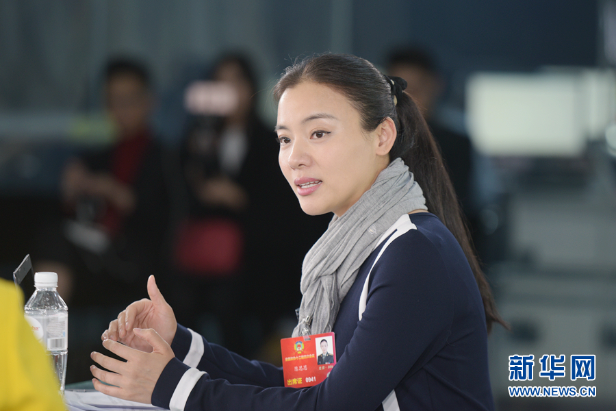 2016年3月8日,全国政协委员、全国青联常委、第十届全国人大代表,中国青年女歌唱家、国家一级演员陈思思做客新华网2016全国两会特别访谈,与新华网网友在线交流。图为陈思思在访谈现场。新华网 郭小天 摄