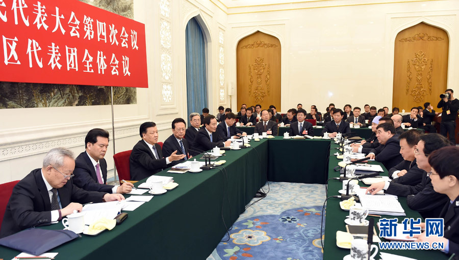 3月8日,中共中央政治局常委、中央书记处书记刘云山参加十二届全国人大四次会议宁夏代表团的审议。 新华社记者 张铎 摄