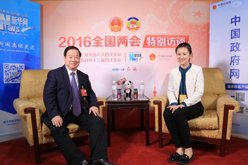 全国政协委员、新华联集团董事局主席傅军做客“新华网两会访谈”。新华网/中国政府网 李何铭 摄