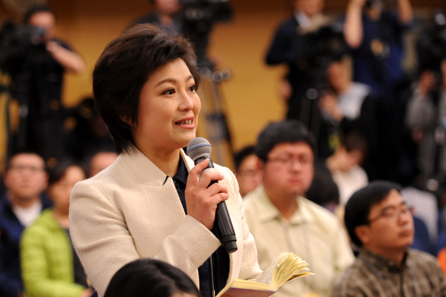 十二届全国人大四次会议新闻中心于3月8日(星期二)15时在梅地亚中心多功能厅举行记者会,邀请国家卫生和计划生育委员会主任李斌、副主任马晓伟和副主任王培安就“实施全面两孩政策”的相关问题回答中外记者的提问。图为成都电视台记者提问。新华网/中国政府网记者 陈杰 摄