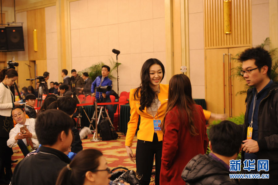 十二届全国人大四次会议新闻中心于3月8日(星期二)10时在梅地亚中心多功能厅举行记者会,邀请外交部部长王毅就“中国的外交政策和对外关系”的相关问题回答中外记者的提问。图为发布会上的美女记者 。新华网发 陈杰摄