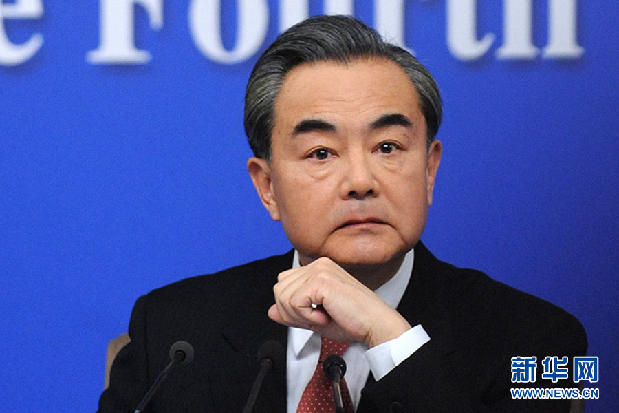 十二届全国人大四次会议新闻中心于3月8日(星期二)10时在梅地亚中心多功能厅举行记者会,邀请外交部部长王毅就“中国的外交政策和对外关系”的相关问题回答中外记者的提问。图为外交部部长王毅在记者会现场。新华网/中国政府网记者 陈竞超摄