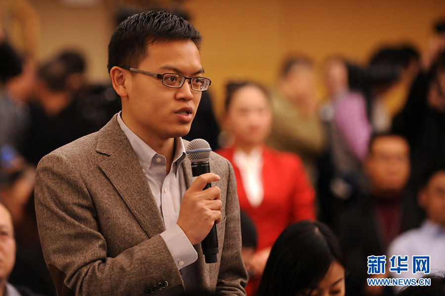 十二届全国人大四次会议新闻中心于3月10日(星期四)9时在梅地亚中心多功能厅举行记者会,邀请全国人大内司委副主任委员王胜明、全国人大财经委副主任委员乌日图、全国人大环资委副主任委员袁驷、全国人大常委会法工委副主任郑淑娜就“人大立法工作”的相关问题回答中外记者的提问。图为人民日报记者提问。新华网/中国政府网 陈杰 摄