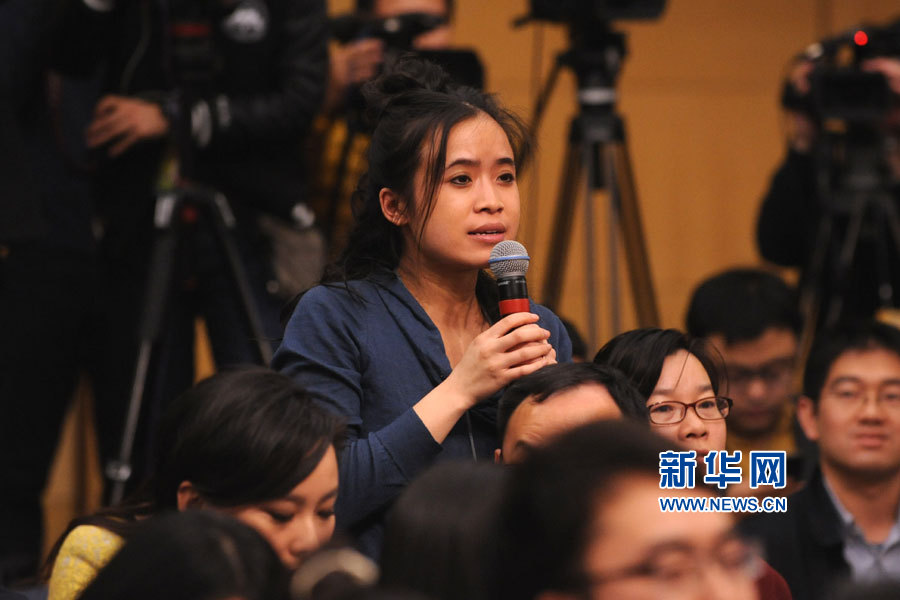 3月10日,十二届全国人大四次会议新闻中心举行记者会,邀请教育部部长袁贵仁就“教育改革和发展”的相关问题回答中外记者的提问。图为华尔街日报记者提问。新华网/中国政府网 陈杰 摄