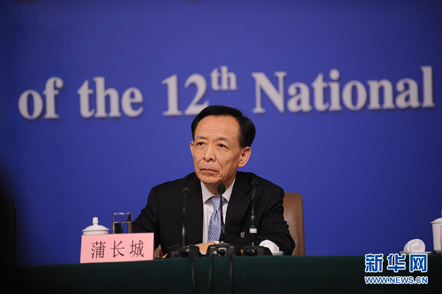 十二届全国人大四次会议新闻中心于3月11日(星期五)16时15分在梅地亚中心多功能厅举行记者会,邀请全国人大教育科学文化卫生委员会主任委员柳斌杰、全国人大环境与资源保护委员会委员蒲长城、全国人大农业与农村委员会委员张晓山、全国人大常委会预算工作委员会副主任刘修文、全国人大常委会办公厅秘书局巡视员傅文杰就“人大监督工作”的相关问题回答中外记者的提问。图为全国人大环境与资源保护委员会委员蒲长城回答记者提问。新华网/中国政府网 陈杰 摄