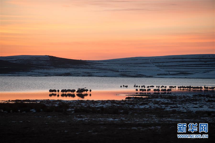 这是在云南省大山包黑颈鹤国家级自然保护区大海子湿地拍摄的日出(2月28日摄)。