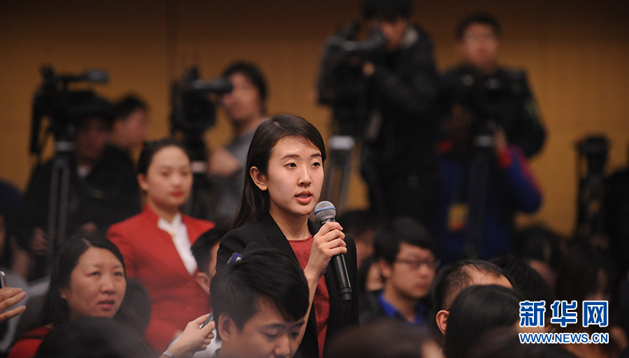 十二届全国人大四次会议新闻中心于3月12日(星期六)14时30分在梅地亚中心多功能厅举行记者会,邀请国务院国有资产监督管理委员会主任肖亚庆、副主任张喜武、副主任黄丹华和副秘书长、新闻发言人彭华岗就“国企改革”的相关问题回答中外记者的提问。图为新华社记者提问。新华网/中国政府网 陈杰 摄