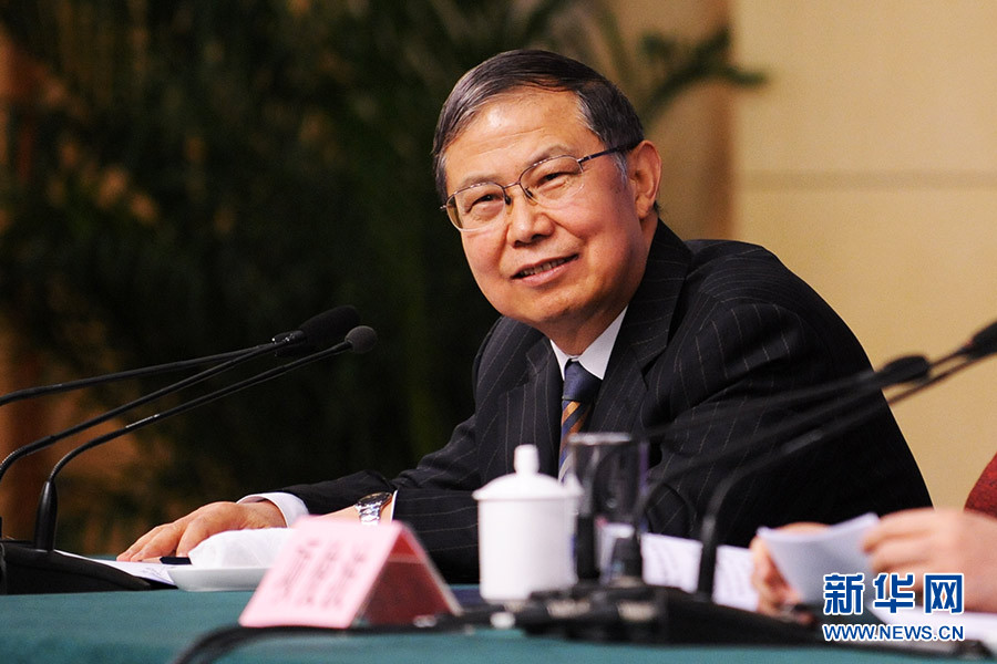 3月12日,十二届全国人大四次会议在梅地亚中心多功能厅举行记者会,邀请中国银行业监督管理委员会主席尚福林、中国证券监督管理委员会主席刘士余、中国保险监督管理委员会主席项俊波回答中外记者的提问。图为十二届全国人大四次会议新闻中心副主任、主持人祝寿臣。新华网/中国政府网 陈杰 摄