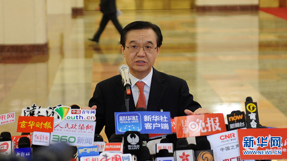 3月13日上午9时,第十二届全国人民代表大会第四次会议将在人民大会堂举行第三次全体会议,听取最高人民法院院长周强关于最高人民法院工作的报告,听取最高人民检察院检察长曹建明关于最高人民检察院工作的报告。图为商务部长高虎城在部长通道接受采访。新华网/中国政府网 陈竞超 摄