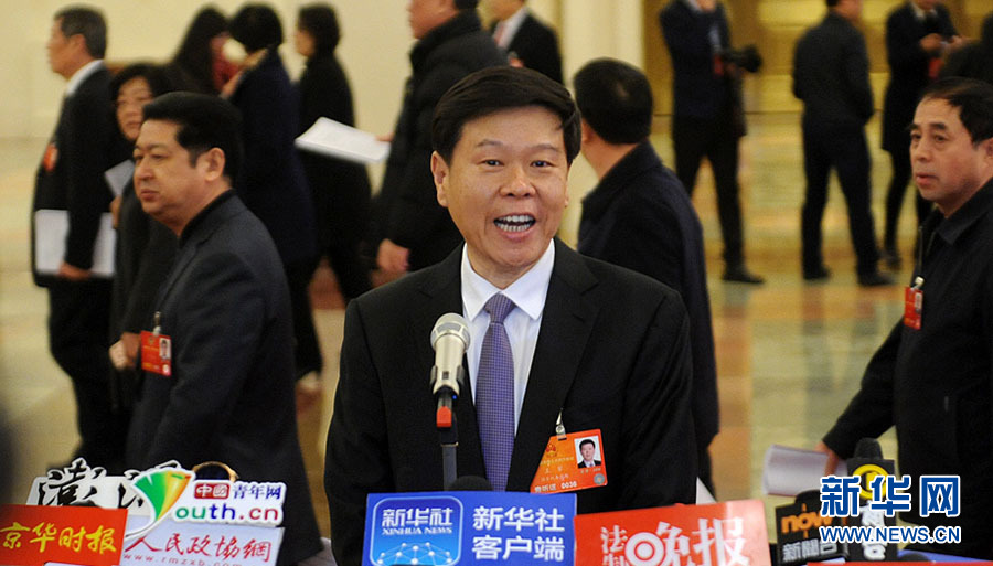 3月13日上午9时,第十二届全国人民代表大会第四次会议将在人民大会堂举行第三次全体会议,听取最高人民法院院长周强关于最高人民法院工作的报告,听取最高人民检察院检察长曹建明关于最高人民检察院工作的报告。图为国家税务总局局长王军在部长通道接受采访。新华网/中国政府网 陈竞超 摄