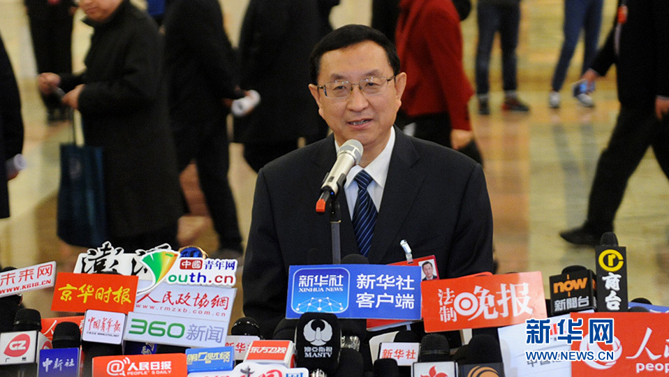 3月13日上午9时,第十二届全国人民代表大会第四次会议将在人民大会堂举行第三次全体会议,听取最高人民法院院长周强关于最高人民法院工作的报告,听取最高人民检察院检察长曹建明关于最高人民检察院工作的报告。图为文化部部长雒树刚在部长通道接受采访。新华网/中国政府网 陈竞超 摄