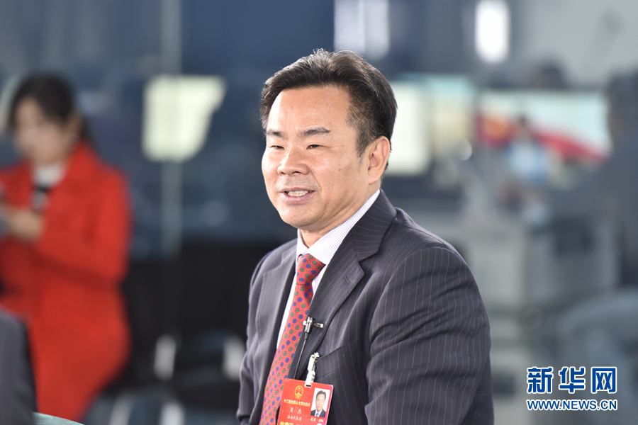 2016年3月13日,全国人大代表、海南省三沙市委书记、市政府市长肖杰做客新华网两会访谈直播间。图为肖杰。新华网 郭小天 摄