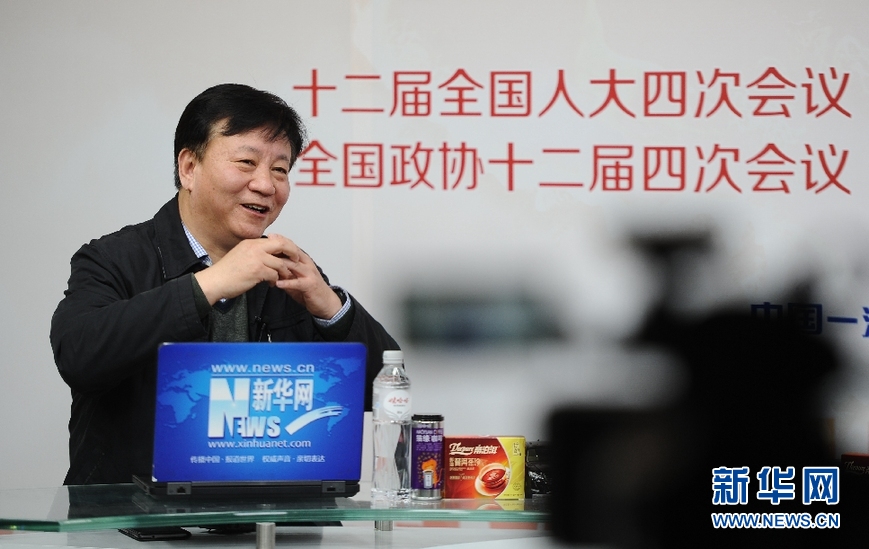 2016年3月14日,全国政协委员,天津达仁堂京万红药业有限公司总经理刘文伟做客新华网2016全国两会特别访谈,与新华网网友在线交。图为刘文伟在访谈现场。新华网 贾海元 摄