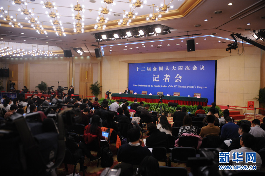 十二届全国人大四次会议新闻中心于3月14日(星期一)10时在梅地亚中心多功能厅举行记者会,邀请交通运输部部长杨传堂、交通运输部运输服务司司长刘小明、北京交通发展研究中心主任郭继孚就“深化出租汽车改革与发展”的相关问题回答中外记者的提问。图为开始前的记者会现场。新华网/中国政府网 陈杰 摄
