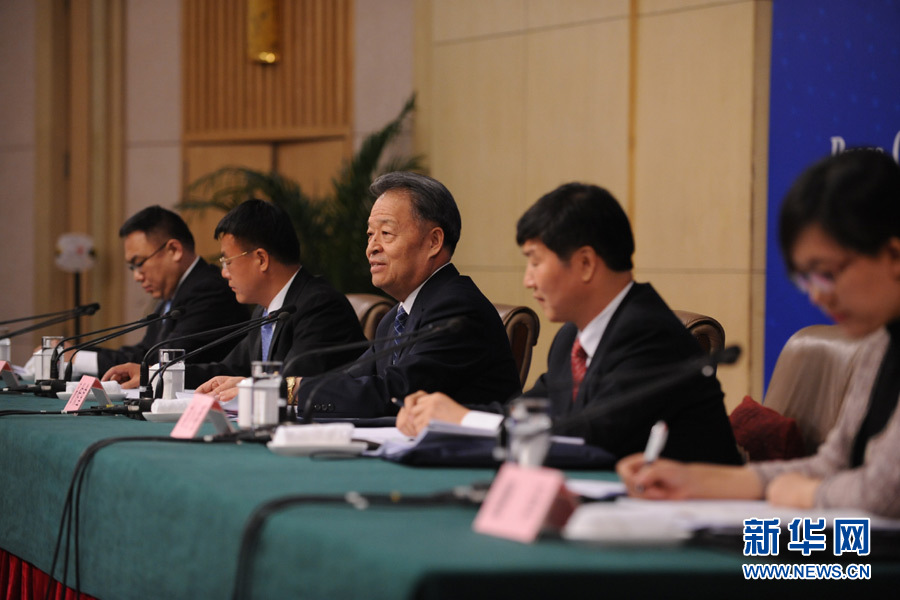 十二届全国人大四次会议新闻中心于3月14日(星期一)10时在梅地亚中心多功能厅举行记者会,邀请交通运输部部长杨传堂、交通运输部运输服务司司长刘小明、北京交通发展研究中心主任郭继孚就“深化出租汽车改革与发展”的相关问题回答中外记者的提问。图为交通运输部部长杨传堂答记者问。新华网/中国政府网 陈杰 摄