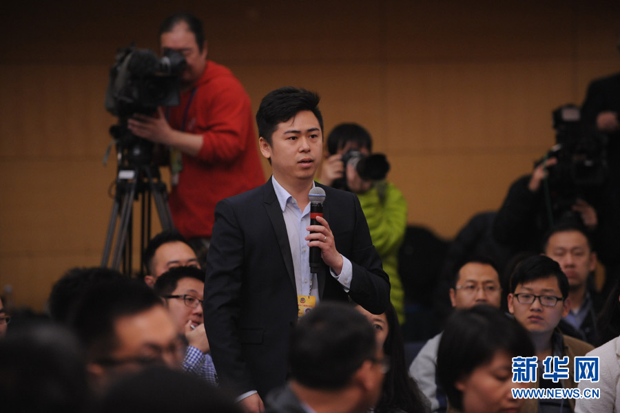 十二届全国人大四次会议新闻中心于3月14日(星期一)10时在梅地亚中心多功能厅举行记者会,邀请交通运输部部长杨传堂、交通运输部运输服务司司长刘小明、北京交通发展研究中心主任郭继孚就“深化出租汽车改革与发展”的相关问题回答中外记者的提问。图为深圳卫视记者提问。新华网/中国政府网 陈杰 摄