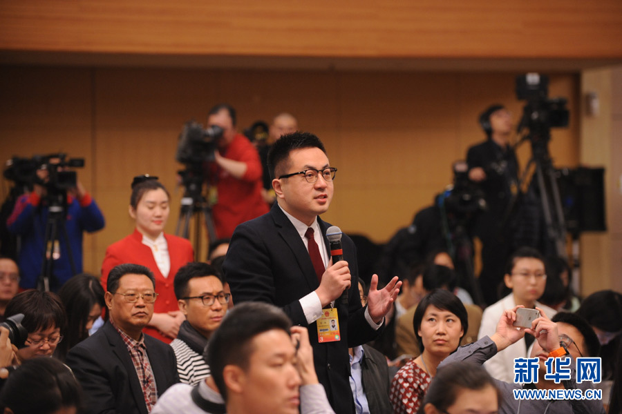 十二届全国人大四次会议新闻中心于3月14日(星期一)10时在梅地亚中心多功能厅举行记者会,邀请交通运输部部长杨传堂、交通运输部运输服务司司长刘小明、北京交通发展研究中心主任郭继孚就“深化出租汽车改革与发展”的相关问题回答中外记者的提问。图为中国网记者提问。新华网/中国政府网 陈杰 摄