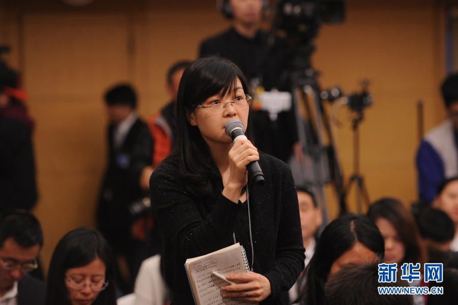 十二届全国人大四次会议新闻中心于3月14日(星期一)10时在梅地亚中心多功能厅举行记者会,邀请交通运输部部长杨传堂、交通运输部运输服务司司长刘小明、北京交通发展研究中心主任郭继孚就“深化出租汽车改革与发展”的相关问题回答中外记者的提问。图为新华报业集团、扬子晚报、交汇点客户端记者提问。新华网/中国政府网 陈杰 摄