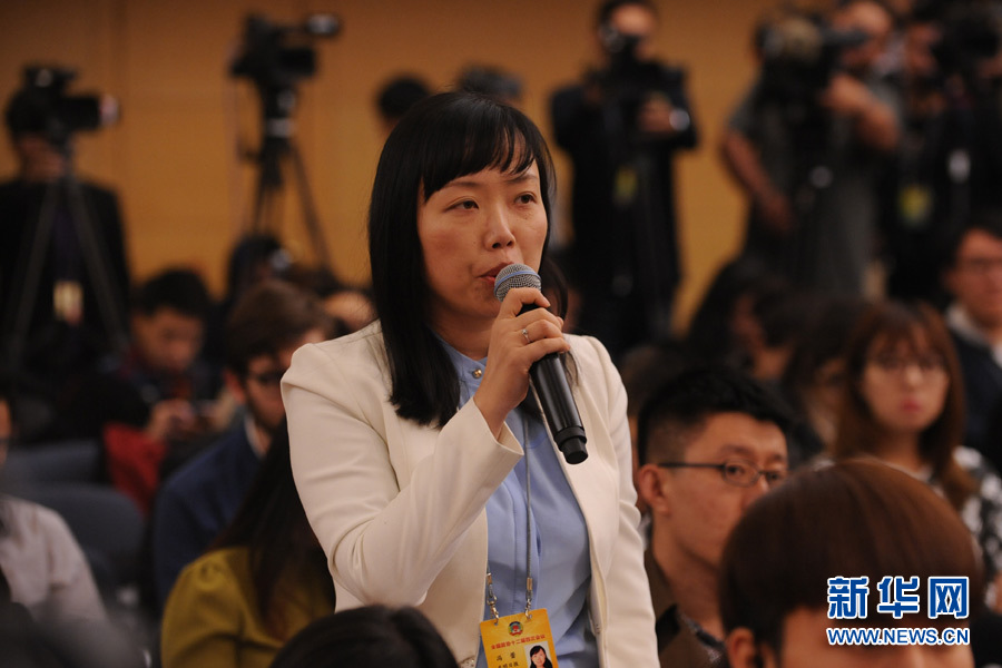 十二届全国人大四次会议新闻中心于3月14日(星期一)10时在梅地亚中心多功能厅举行记者会,邀请交通运输部部长杨传堂、交通运输部运输服务司司长刘小明、北京交通发展研究中心主任郭继孚就“深化出租汽车改革与发展”的相关问题回答中外记者的提问。图为光明日报、光明网记者提问。新华网/中国政府网 陈杰 摄