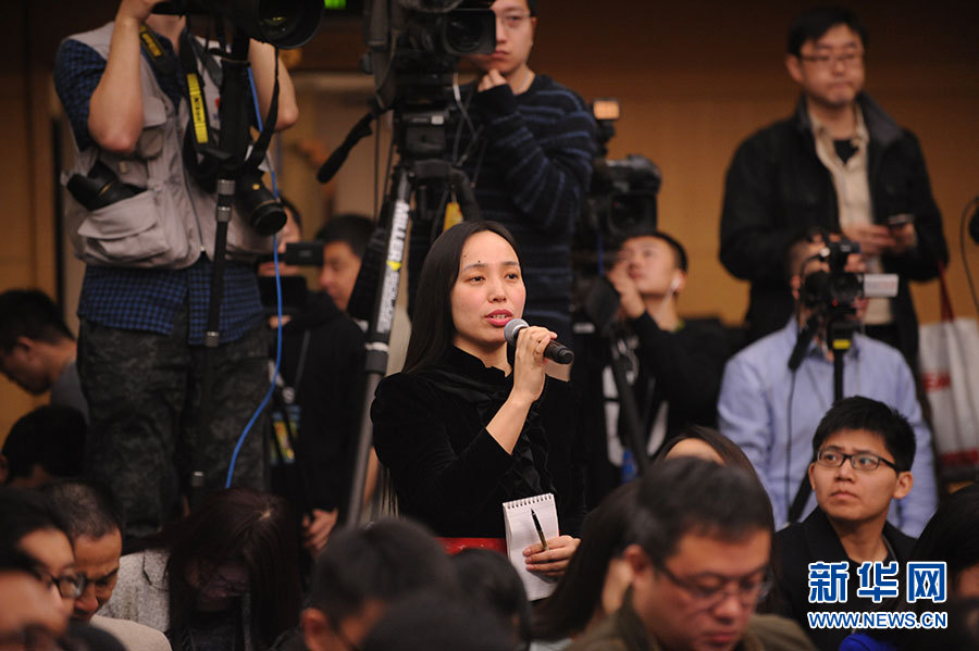 十二届全国人大四次会议新闻中心于3月15日(星期二)10时在梅地亚中心多功能厅举行记者会,邀请住房和城乡建设部部长陈政高、副部长陆克华、副部长倪虹就“棚户区改造和房地产工作”的相关问题回答中外记者的提问。图为中国日报记者提问。新华网/中国政府网 陈杰 摄