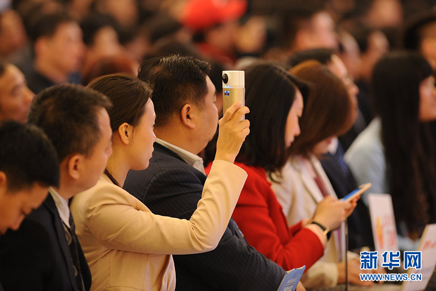 3月16日上午,国务院总理李克强在人民大会堂三楼金色大厅会见采访十二届全国人大四次会议的中外记者并回答记者提出的问题。图为新华网VR报道总理记者会。新华网/中国政府网 陈杰摄