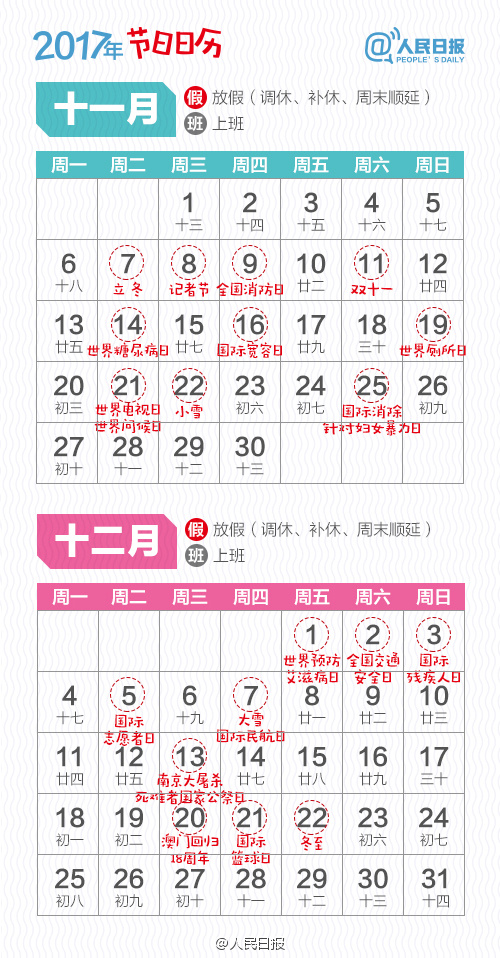 2017年来了!法定假日、二十四节气、中国传统节日、国际纪念日,你都知道吗?……最全2017节假日日历,全年都有用,提前做计划,火速转发收藏!