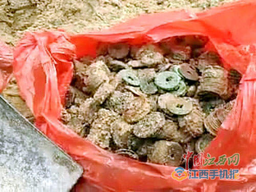 江西赣江沙滩现大量古钱币 民众疯抢民警拉警戒线