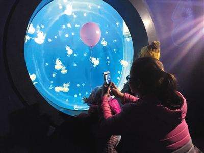 据了解,此次开业的未来水母馆,共分为特色光影区、水母万花筒、水母秘境、水母音乐厅、水母童话区、水母互动区等六大主题展区和水母实验室、水母教室两大功能展区,通过数字互动、声光投影等多种形式向游客展现五光十色、神奇梦幻的水母世界。