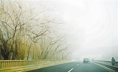 京沪高速十里河桥上,路旁树上结满树挂 摄影/本报记者 王晓溪