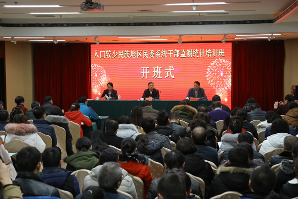 为进一步做好“十三五”扶持人口较少民族发展工作,按照2016年有关扶持人口较少民族发展工作计划部署,国家民委经济发展司于2016年12月29日,在大连民族大学培训中心举办人口较少民族地区民委系统干部监测统计培训班。大连民族大学校长刘玉彬,国家民委经济发展司副巡视员王海青,大连民族大学经济管理学院常务副院长刘大志,大连民族大学东北少数民族研究院书记朴婷姬,中南民族大学人口较少民族研究团队有关负责同志,大连民族大学东北少数民族研究院有关同志出席了开班式。开班式由国家民委经济发展司袁彦处长主持。培训班邀请北京中园搏望科技发展有限公司工程技术人员到会培训指导。